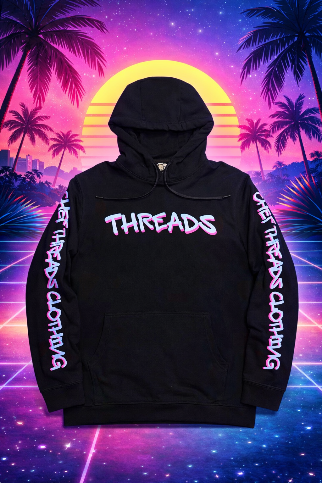 Crafted from our premium 8.5 oz 4-Way Stretch French Terry, this hoodie moves with you like a warm coastal breeze while maintaining its structure and sharp silhouette. The 100% ring-spun cotton face delivers a smooth, high-end finish that makes bold graphics pop, especially under neon lights.